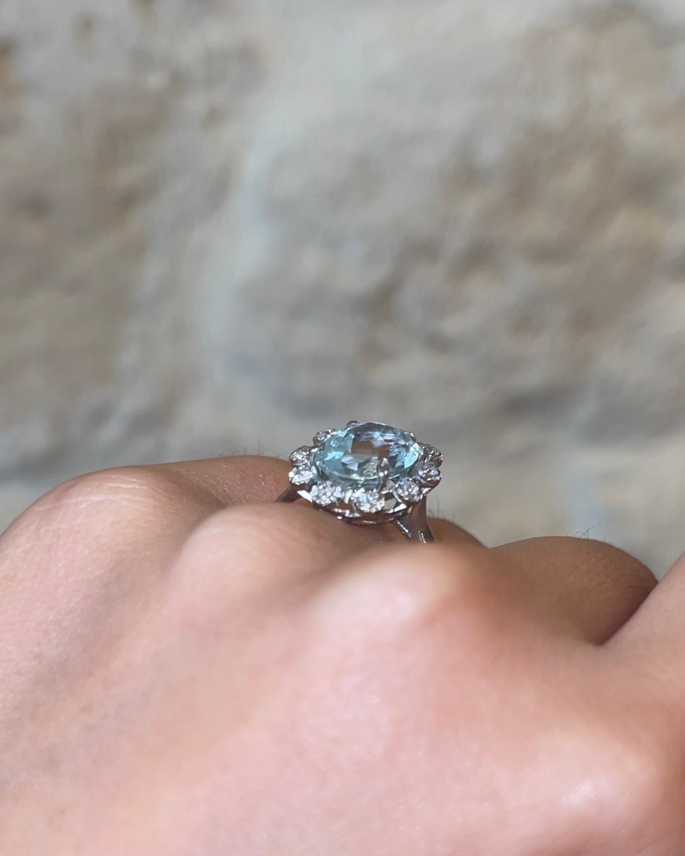 Bague Marguerite Aigue-Marine 2.30 carats & Diamants "Inaya"