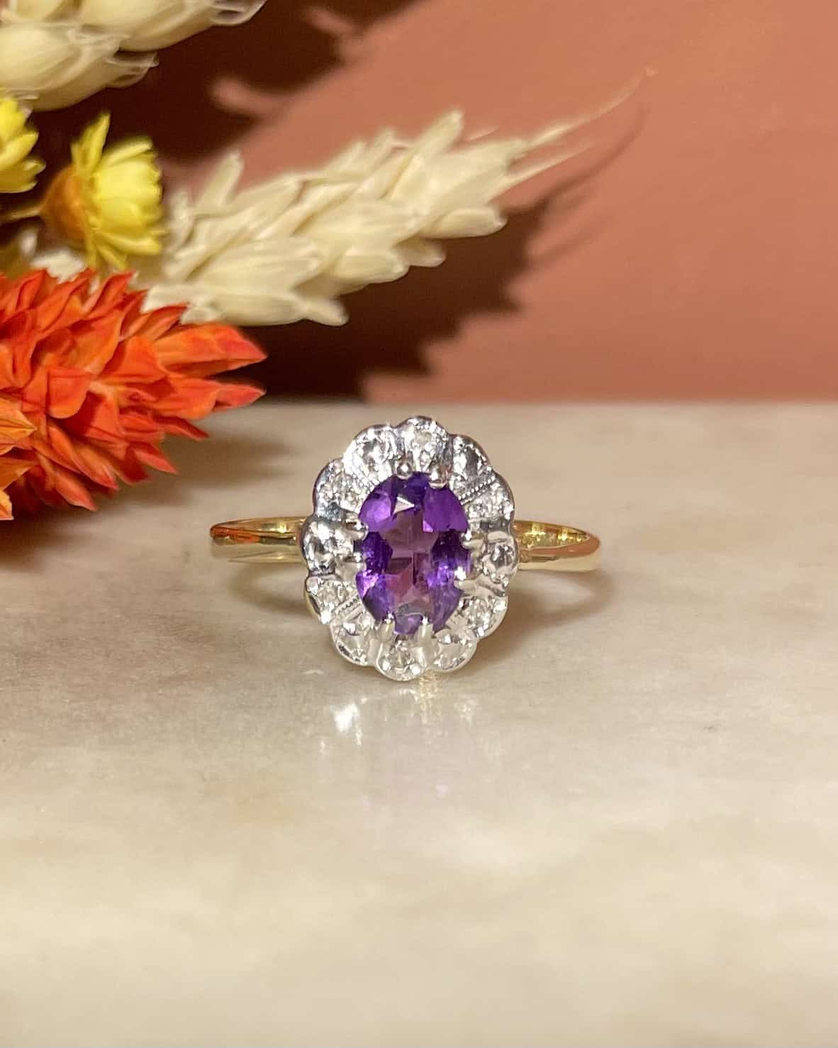 Bague Marguerite Améthyste 1 carat & Diamants "Melissa"