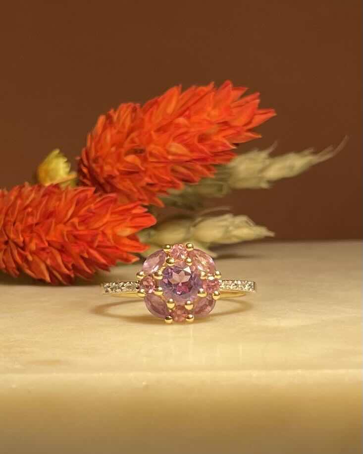 Bague Marguerite Améthystes 0,90 carat & Diamants "Julienne"