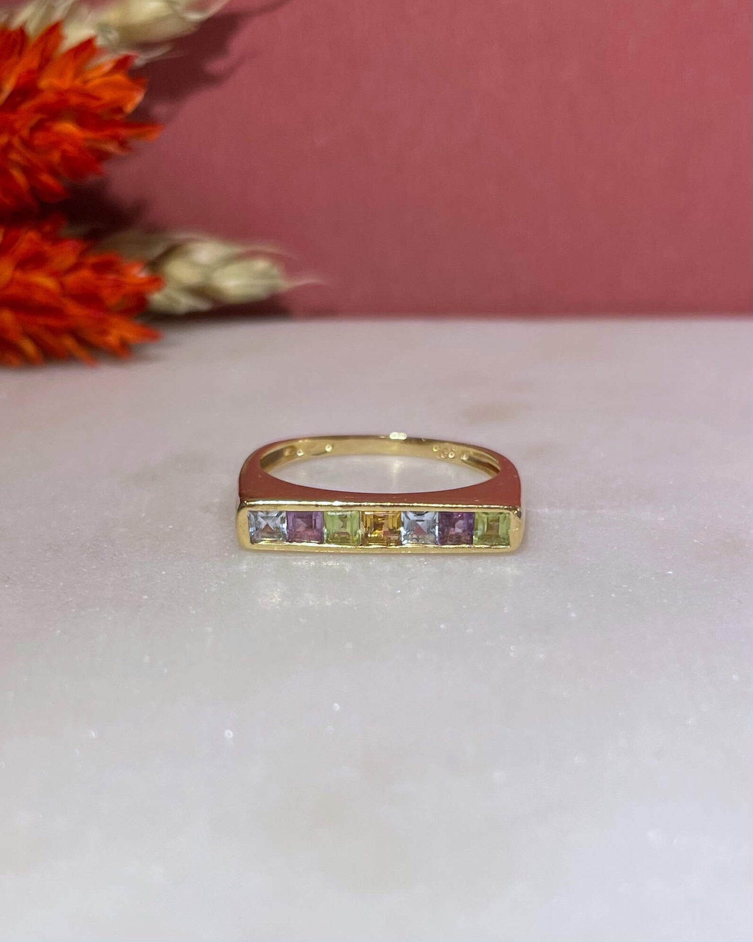 Chaque pierre, minutieusement sélectionnée, confère une harmonie vibrante et joyeuse, faisant de cette bague un bijou aussi spectaculaire qu’intemporel.
