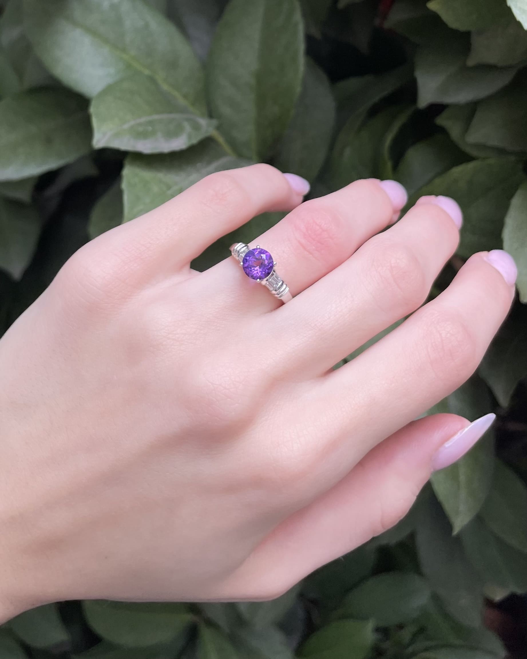 Bague Solitaire Améthyste & 6 Diamants "Padmé"
