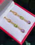 Chaque boucle est ornée de deux Citrines d’une couleur translucide, deux Péridots lumineux et deux Améthystes envoûtantes.