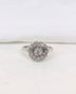 La bague "Sabine" est une élégante création Art-Déco, réalisée en or gris 18 carats et platine. Elle présente un diamant central de 0.20 carat, mis en valeur par un entourage de 10 diamants scintillants totalisant 0.20 carat. Son design géométrique, typique des années 1930, incarne avec finesse l’audace et la modernité de l’époque.