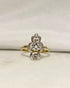 La bague "Doria" est une création française des années 1920, emblématique du style Art déco. Elle est façonnée en or jaune 18 carats et en platine, et sertie de 7 diamants taille rose totalisant 0.05 carat.