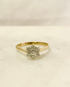 La bague "Soren" est une magnifique création au style marguerite, façonnée en or jaune et gris 18 carats. Elle met en valeur un diamant central de 0,05 carat, entouré d'un halo de 6 autres diamants étincelants totalisant 0,24 carat pour un total de 0,29 carat.