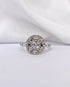 "Suzanne" est une sublime bague art déco vintage en or gris 18 carats et platine, façonnée par un véritable maître joaillier dans les années 1920. Son design géométrique finement ajouré, évoquant une délicate fleur, incarne avec finesse l’audace et la modernité de l’époque. Il présente en son cœur un diamant taille ancienne de 0.05 carat d'une très belle brillance. Il est épaulé d'un halo de 12 diamants taille rose de 0.06 carat au total, au cachet de l'ancien.