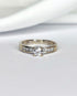 The "Georgia" ring is a stunning vintage solitaire that embodies the refinement of a French master jeweler's craftsmanship. Crafted in 18-carat white gold, it showcases a beautiful 0.29-carat diamond with a brilliant sparkle. It is enhanced by 30 princess-cut diamonds set at the attachments, totaling 0.30 carat.
