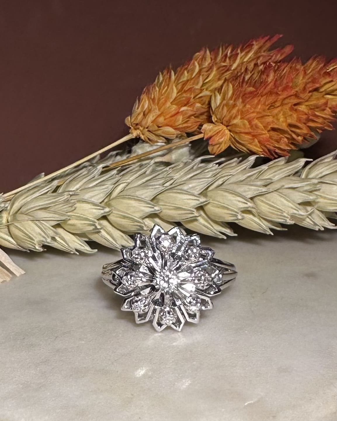 “Kalone” is a majestic vintage daisy ring from the 1950s.