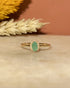 Its centerpiece is a marvelous green emerald at its heart, weighing 0.18 carats. Its oval shape gives it a magnificent cachet, ideal for everyday wear.