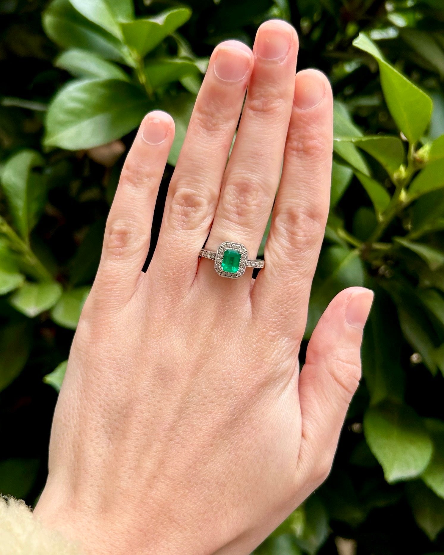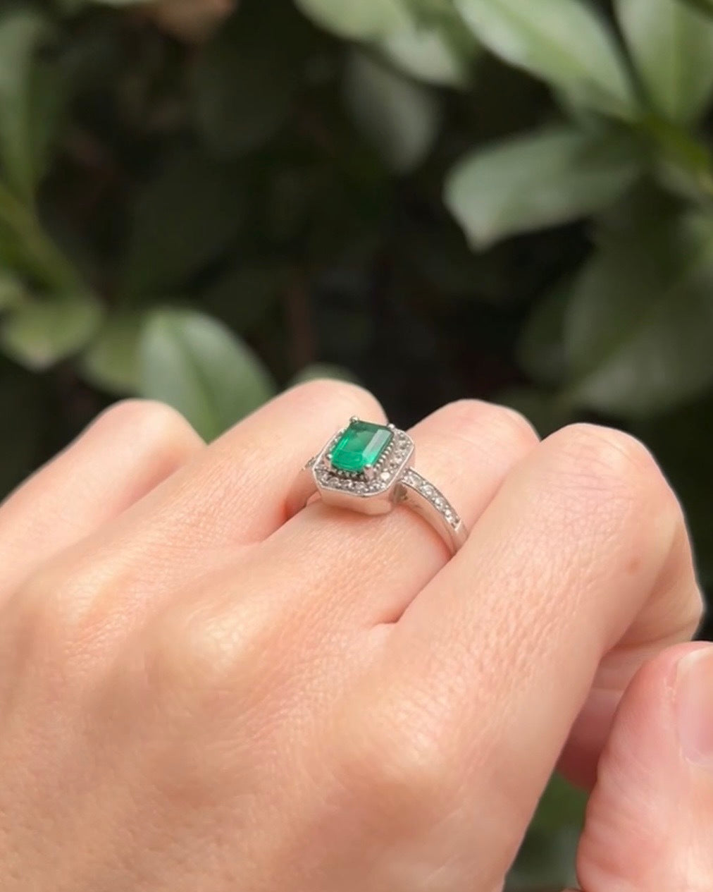 Art Deco Style Emerald & Diamond "Kelly" Ring