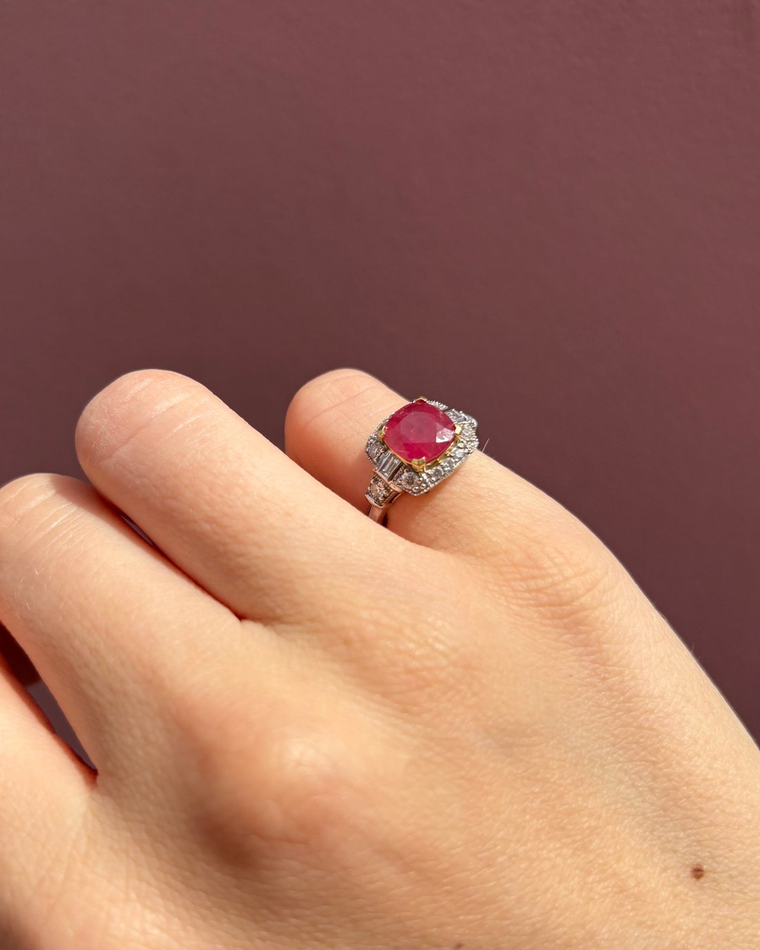 Bague Art-Déco Rubis 2.90 carats & 14 Diamants "Milo"