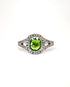 "Juliette" est une sublime bague vintage de style marguerite, façonnée en or gris 18 carats à la fin du XXème siècle. Elle présente en son cœur un magnifique grenat tsavorite taille coussin de 0.90 carat, au vert profondément vibrant. Il est épaulé d'un merveilleux pavage diamanté, soit 54 diamants totalisant 0.27 carat, qui lui confère une brillance irrésistiblement chic.