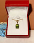 Su luminoso colgante está engastado con un peridoto de 2,50 quilates y engastado con un diamante brillante de 0,02 quilates.