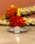 “Layna” es un sublime anillo solitario vintage; Delicadamente elaborado en oro blanco de 18 quilates.