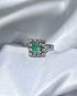 Su esmeralda central de maravillosa profundidad está enmarcada por doce diamantes.