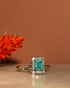 Esta joya está centrada con una deslumbrante esmeralda de 0,25 quilates en un entorno de catorce diamantes que suman un total de 0,28 quilates.