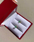 Esta suntuosa pieza está adornada con dos hermosas esmeraldas verdes de 0,45 quilates en total.