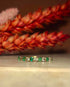 Las seis esmeraldas verdes, con un total de 0,24 quilates, crean un cautivador juego de luz con cada movimiento, con estos cinco diamantes entrelazados, con un total de 0,35 quilates, añadiendo un toque de brillo y destello, creando un magnífico contraste.