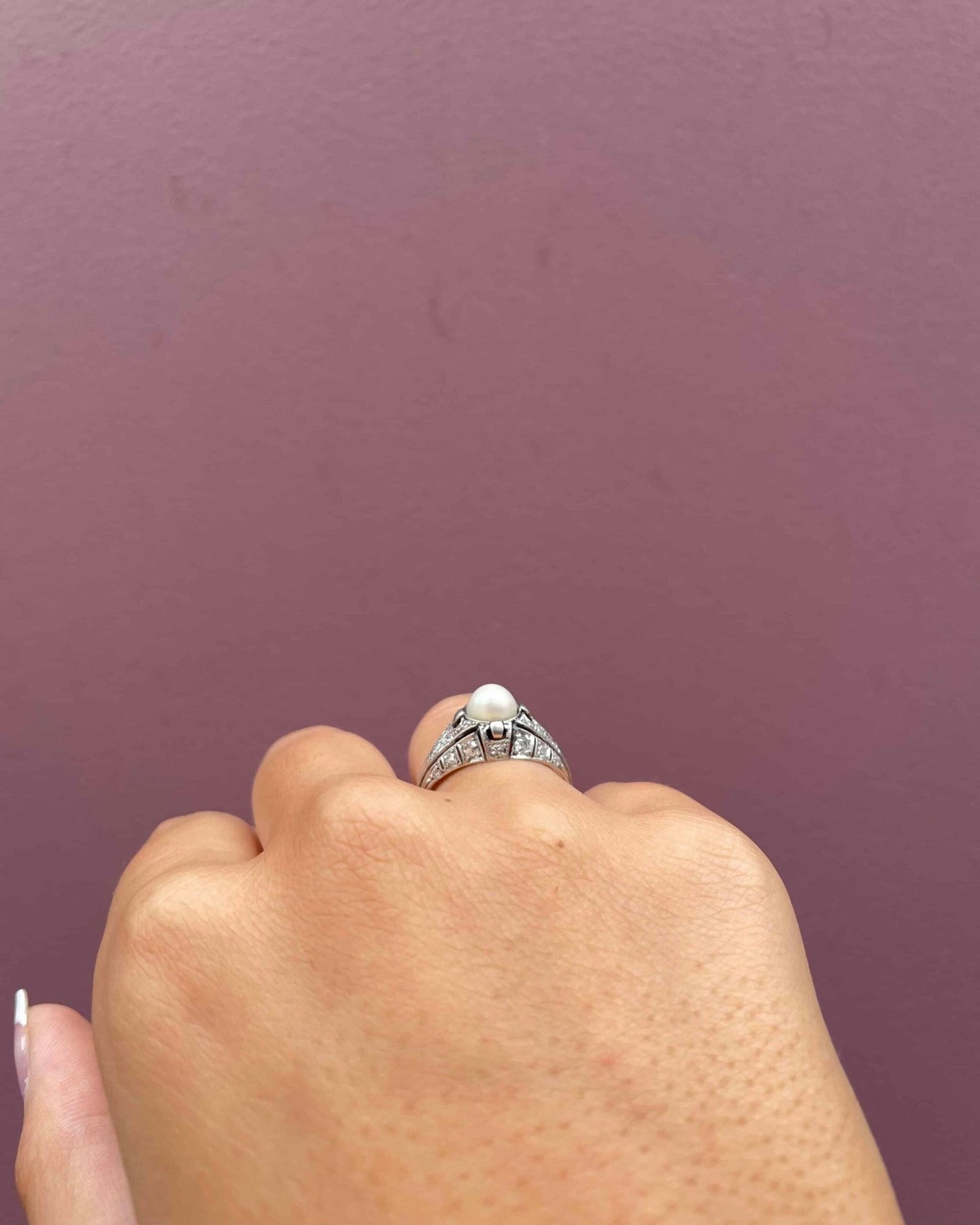 Anillo Art Déco "Winifred" con perla y 30 diamantes