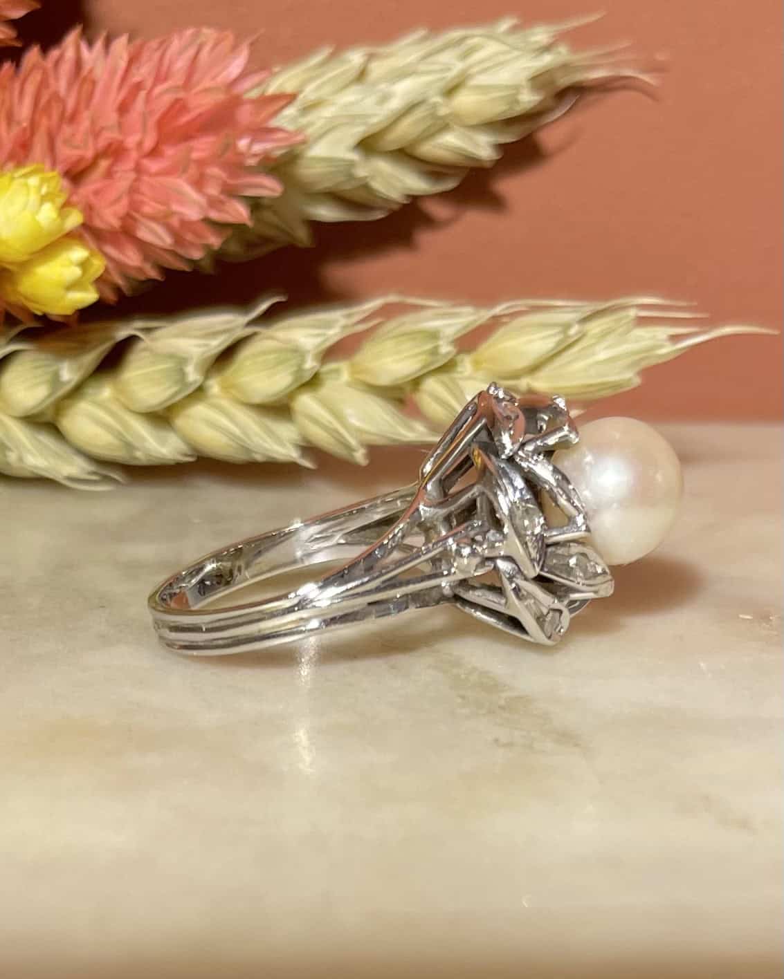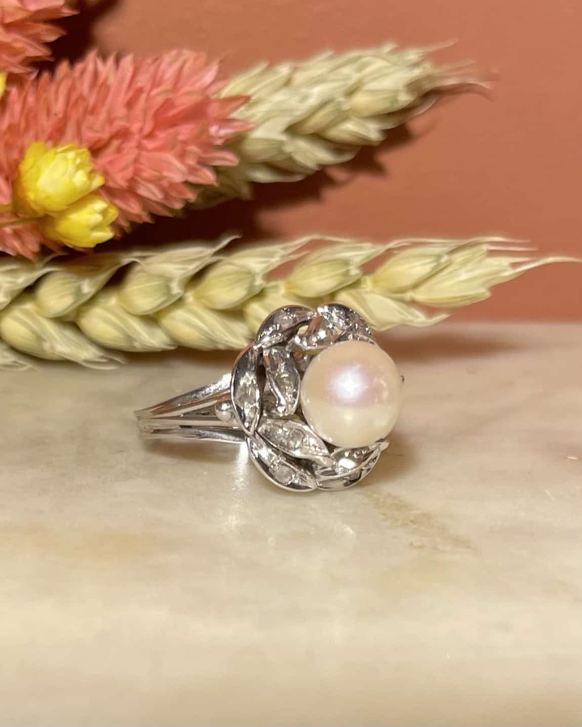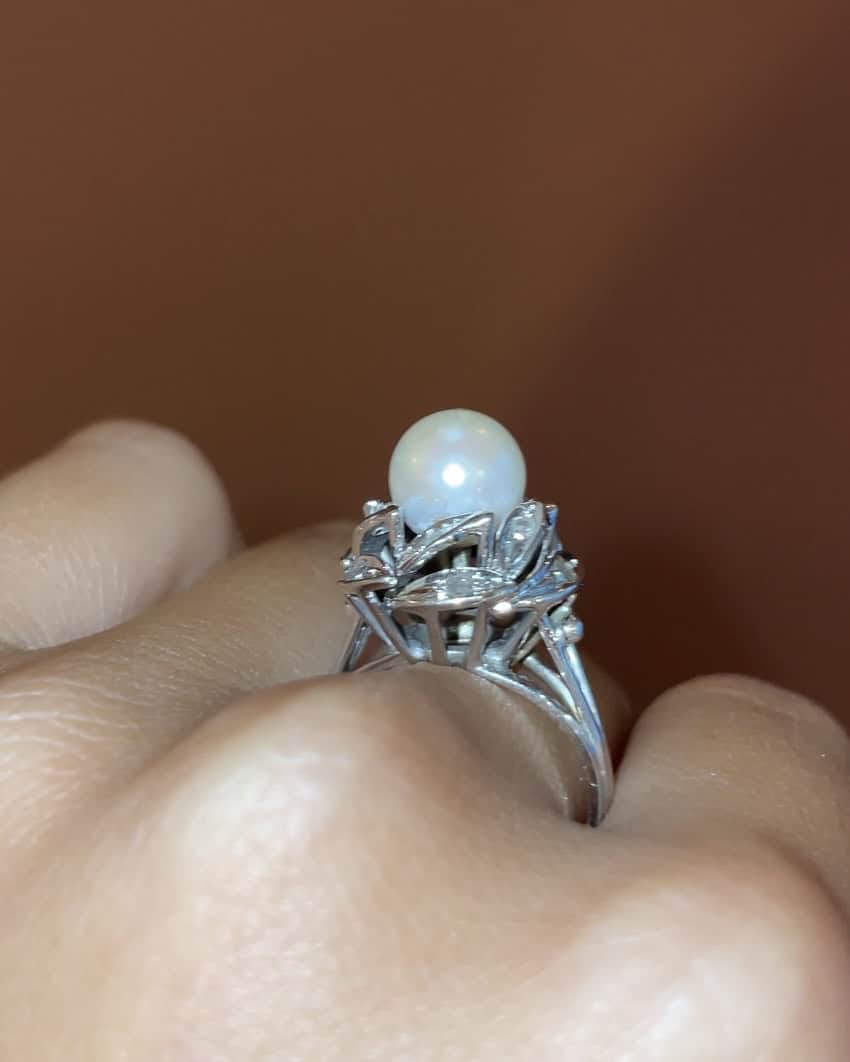 Anillo de flor de perla y diamantes "Pamela"