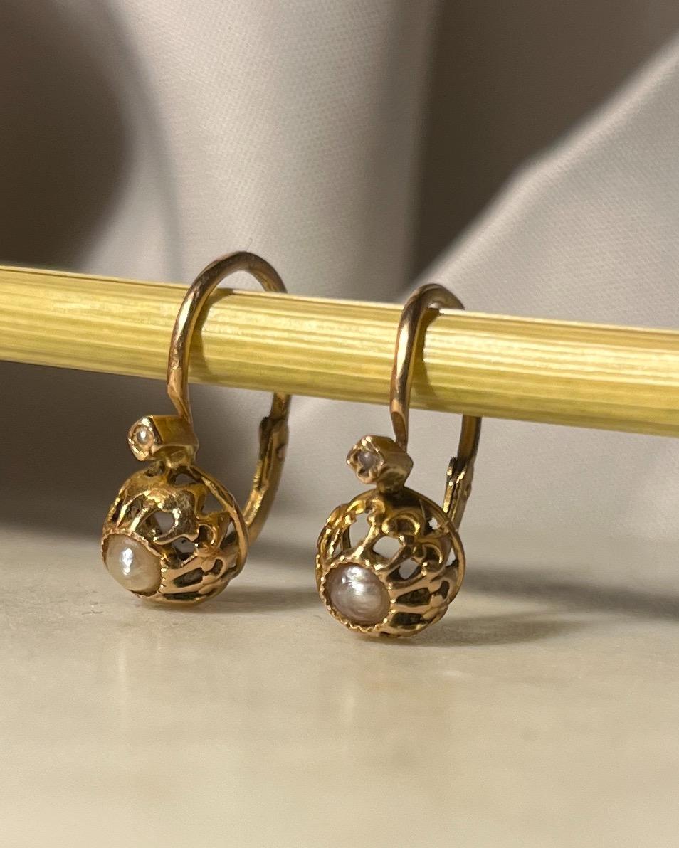 “Elly” es un excepcional par de pendientes tipo dormilona que datan del siglo XIX.