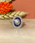 Su parte superior ovalada está engastada con veinte diamantes de talla rosa para un total de 0,20 quilates. El luminoso diamante central de 0,07 quilates está rodeado de doce sublimes zafiros azul real para un total de 0,50 quilates.