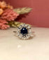 Anillo "Carla" con zafiro de 0,90 quilates y 12 diamantes en forma de margarita