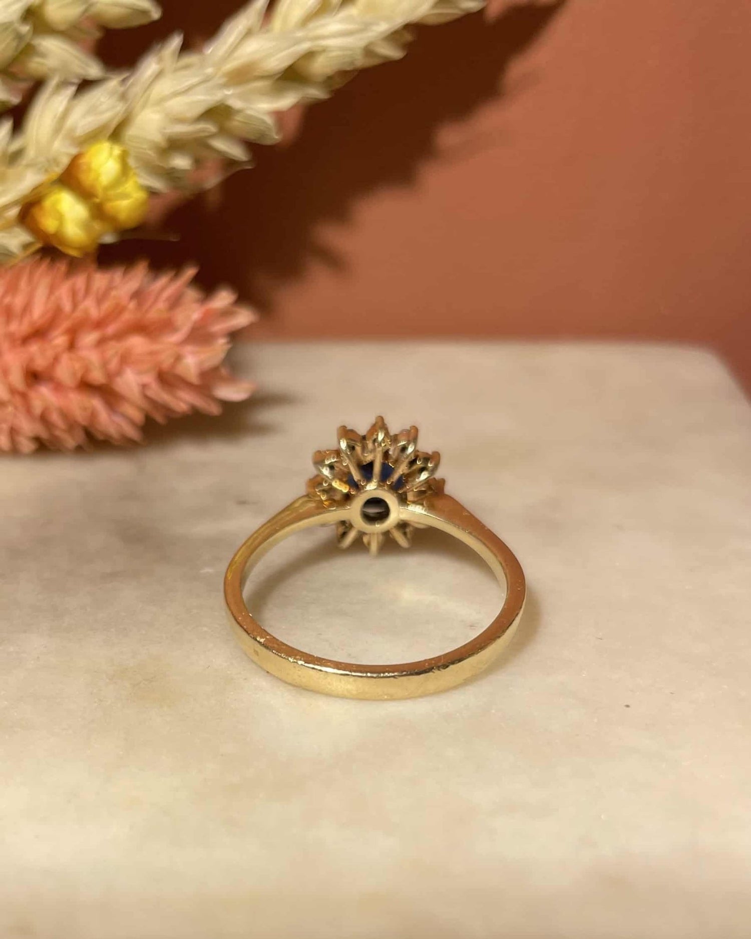 “Malorie” es un sublime anillo de margaritas vintage de la década de 1980, cuidadosamente elaborado en oro amarillo de 14 quilates.