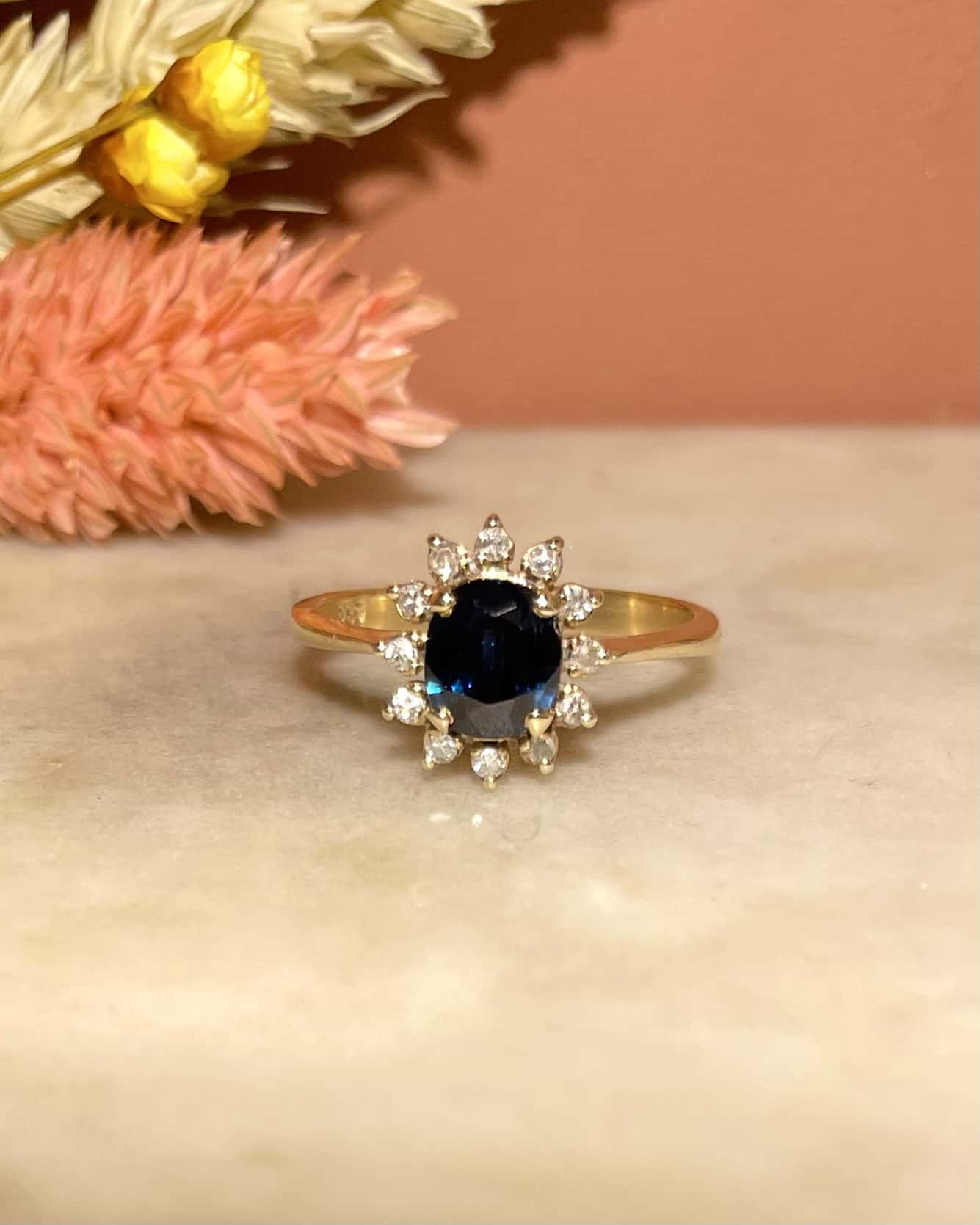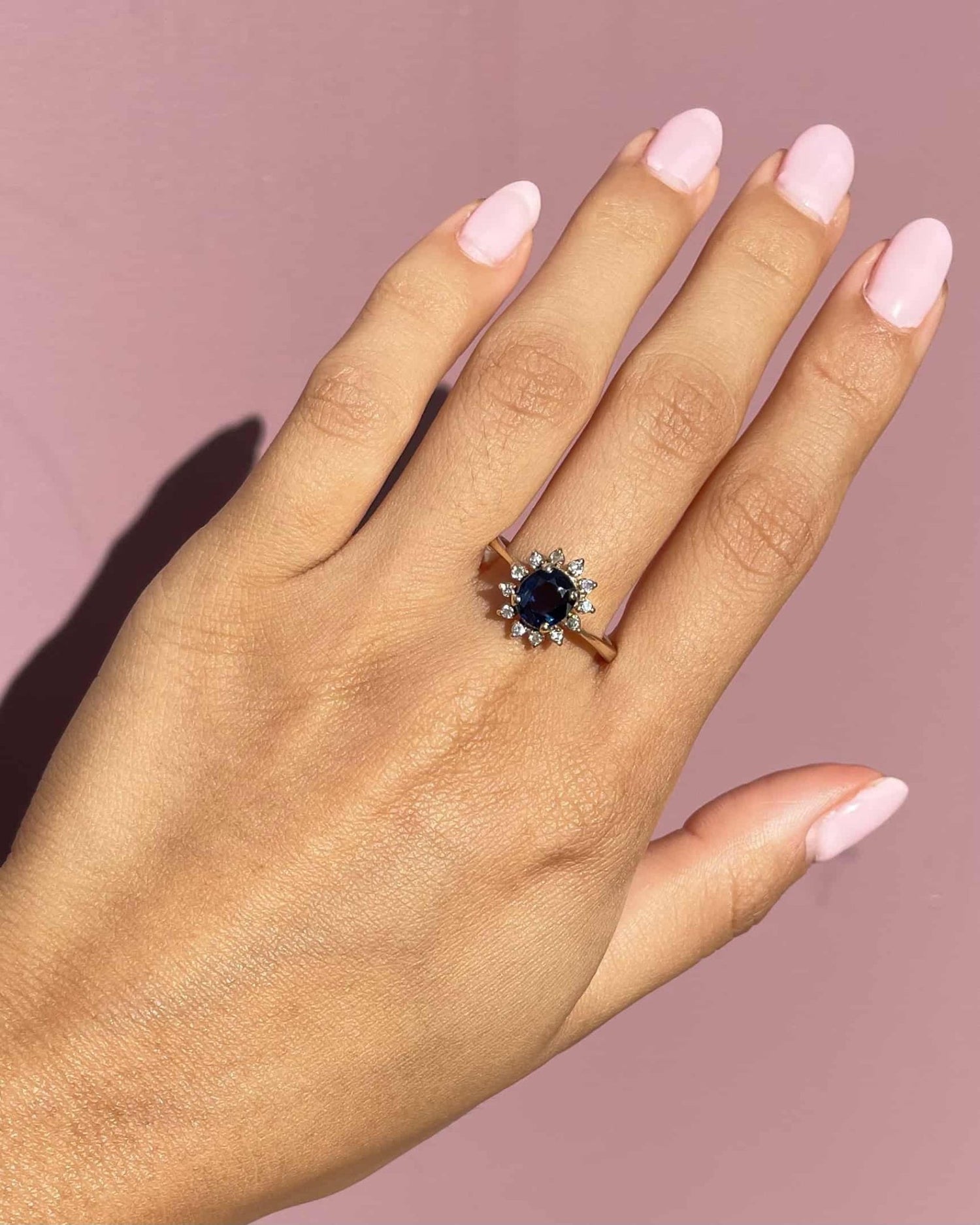 Anillo "Malorie" con margaritas de zafiro y diamantes de 1,10 quilates