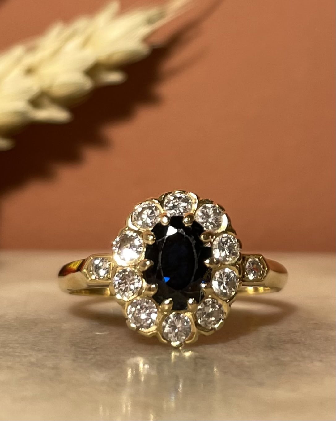 Anillo de zafiro margarita de 1,20 quilates y 12 diamantes "Rosekelly"