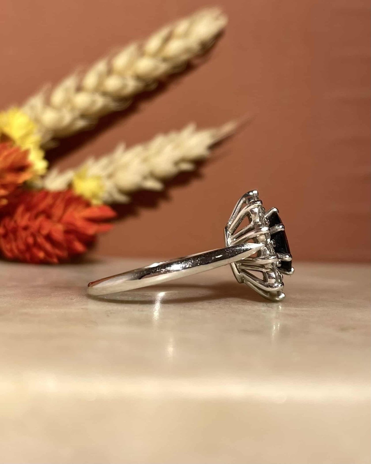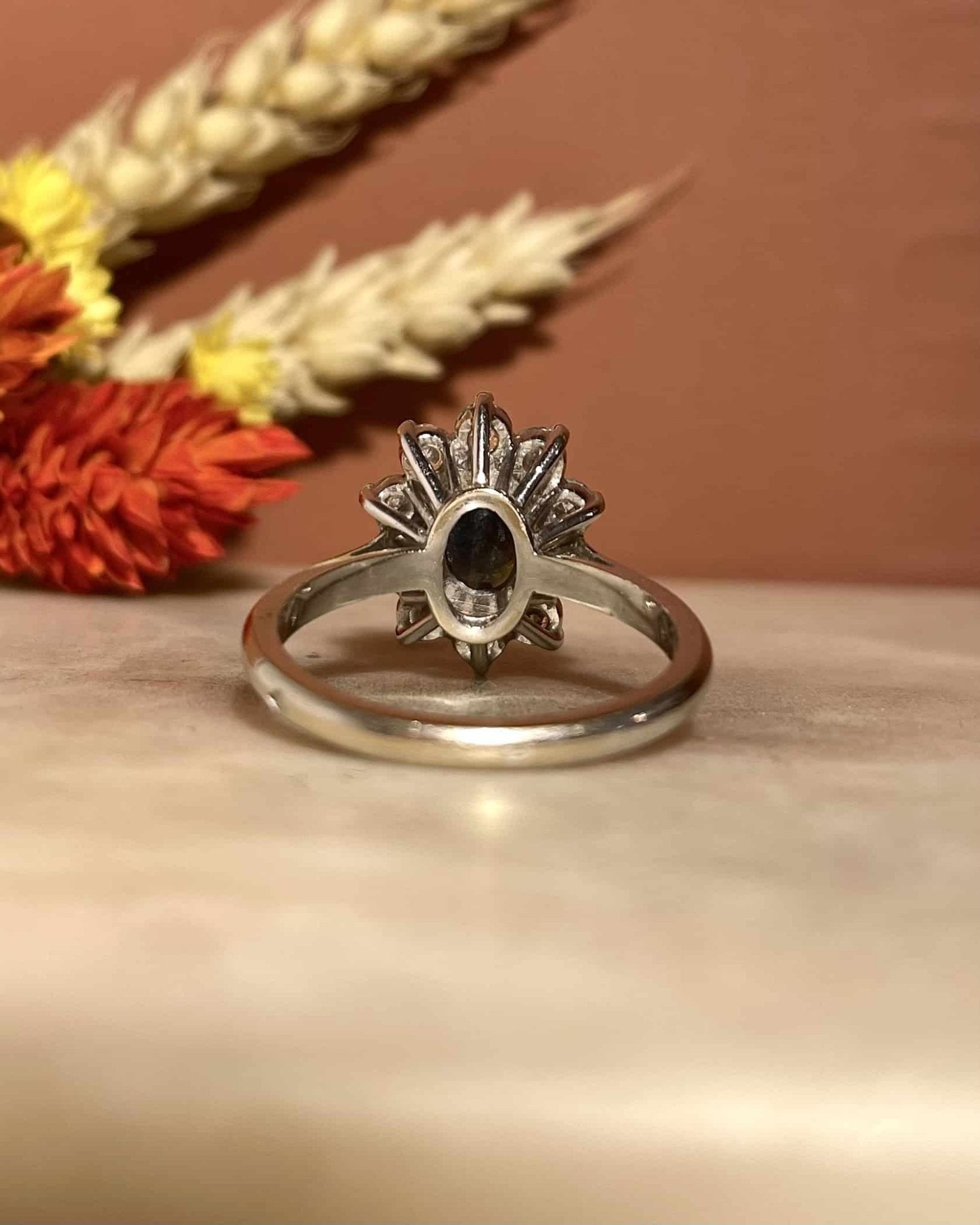 Anillo "Leila" con margaritas de zafiro y diamantes de 1,20 quilates