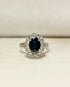 Le contraste intense entre le bleu velouté du saphir et l’éclat pur des diamants donne à cette bague une allure majestueuse et intemporelle.
