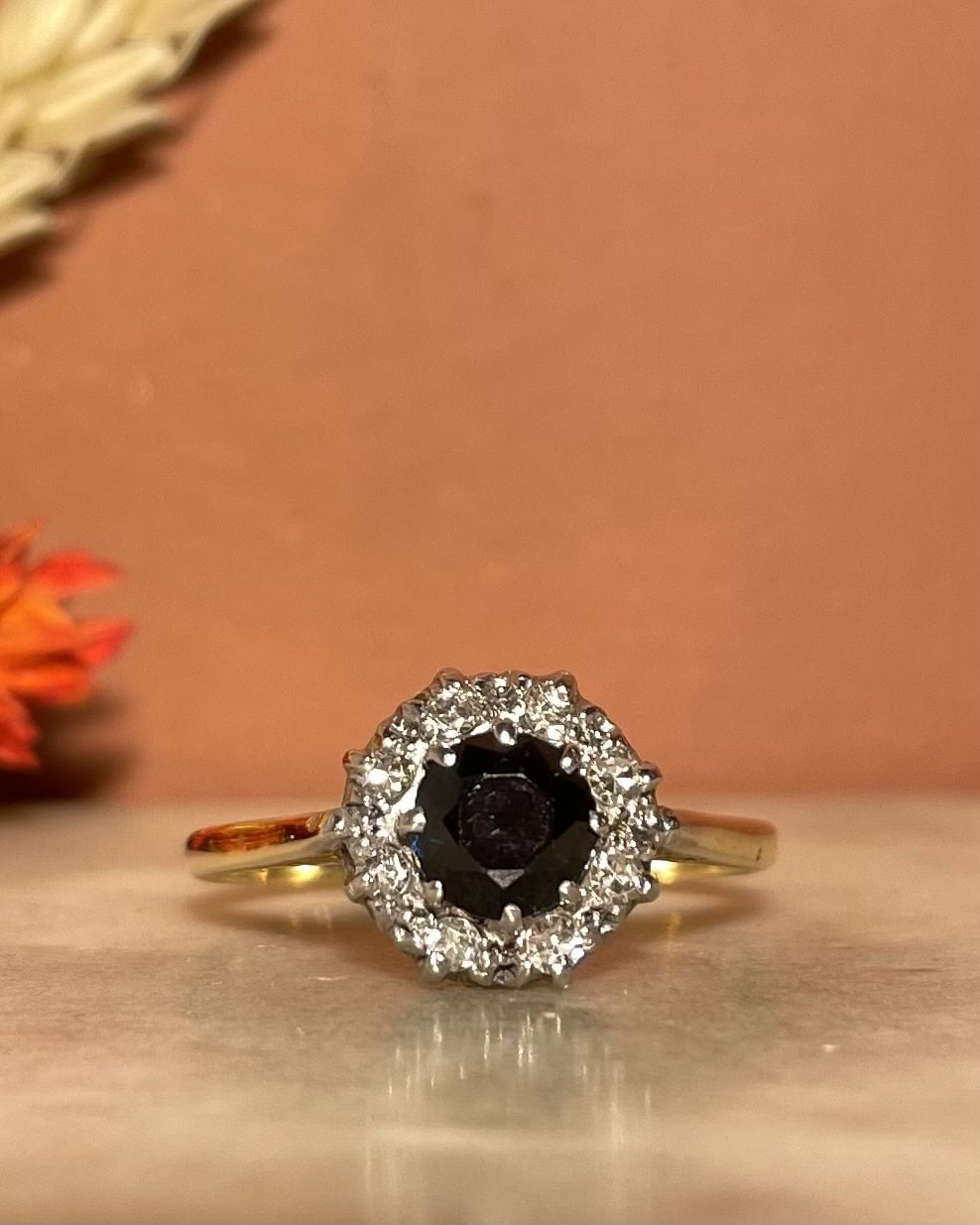 Anillo "Katerine" con margaritas de zafiro y diamantes de 1 quilate