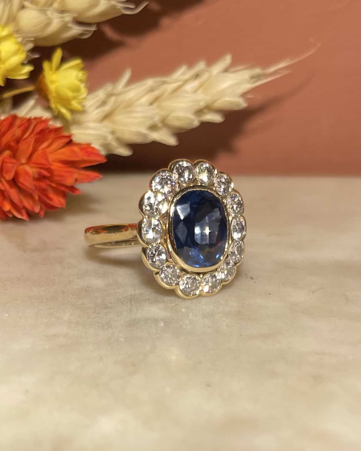 Anillo de zafiro margarita de 2,30 quilates y diamantes de 0,80 quilates "Althéa"