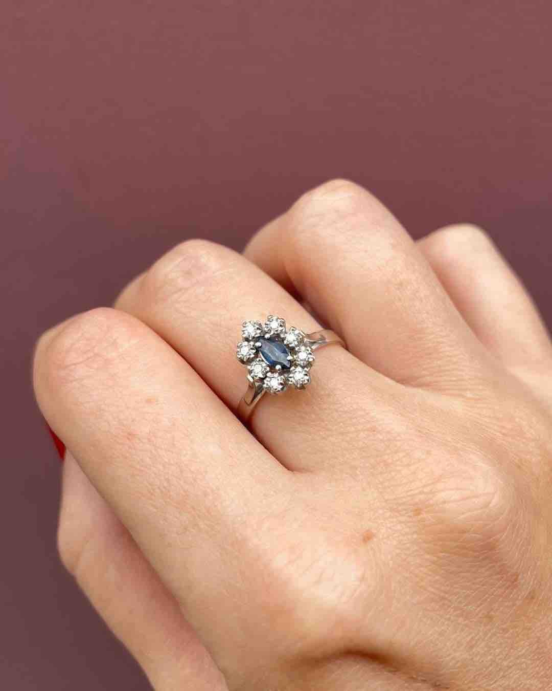 Anillo "Dina" con margaritas de zafiro y diamantes