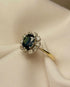 Anillo "Cecilia" con margaritas de diamantes y zafiro verde de 1 quilate