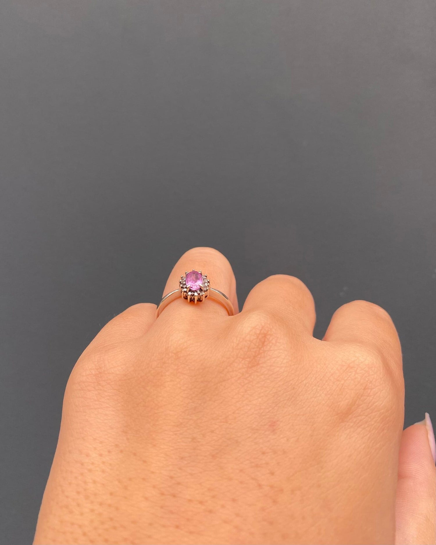 Anillo "Elizabeth" con margaritas de diamantes y zafiro rosa