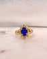 Éblouissante et précieuse, la bague "Garance" présente une tanzanite d’un bleu intense de 1.55 carat, sublimée par un entourage de 10 diamants totalisant 0.40 carat au total, le tout monté sur un anneau en or jaune 18 carats.