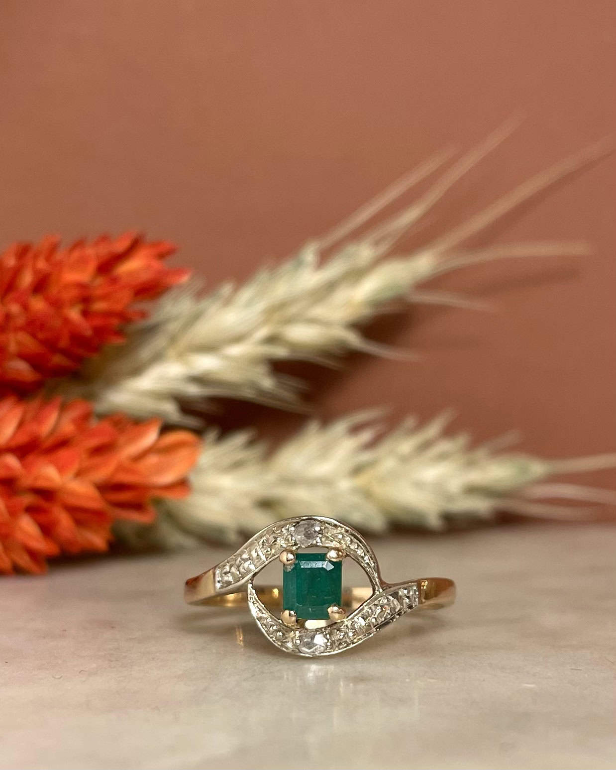 Bague Tourbillon Émeraude 0.26 Carat "Rehmat" - Elliade Paris