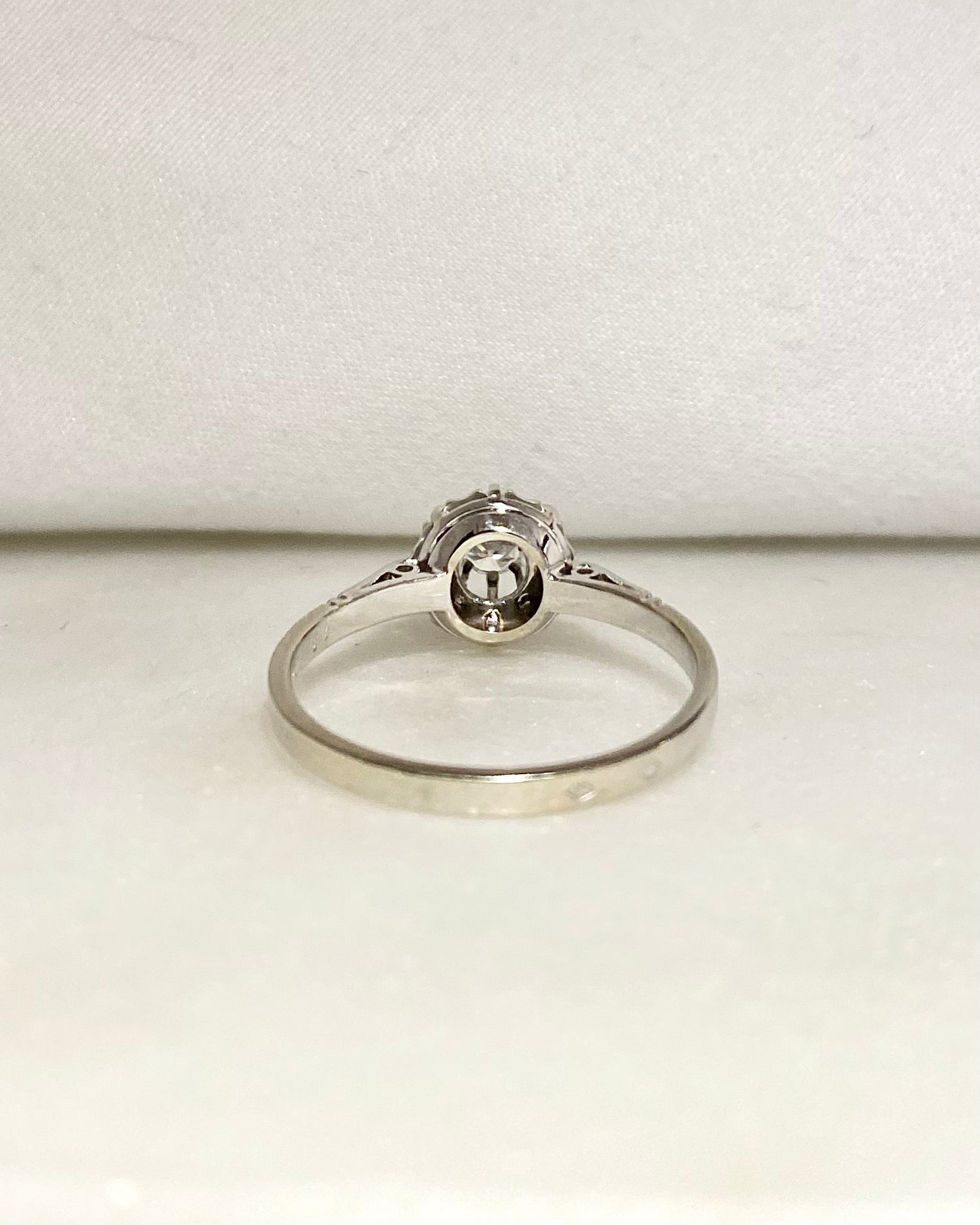Sublime solitaire vintage des années 1950, "Louise" incarne le raffinement du savoir-faire joaillier français. Façonnée en platine, elle met en lumière un somptueux diamant de 0.18 carat.