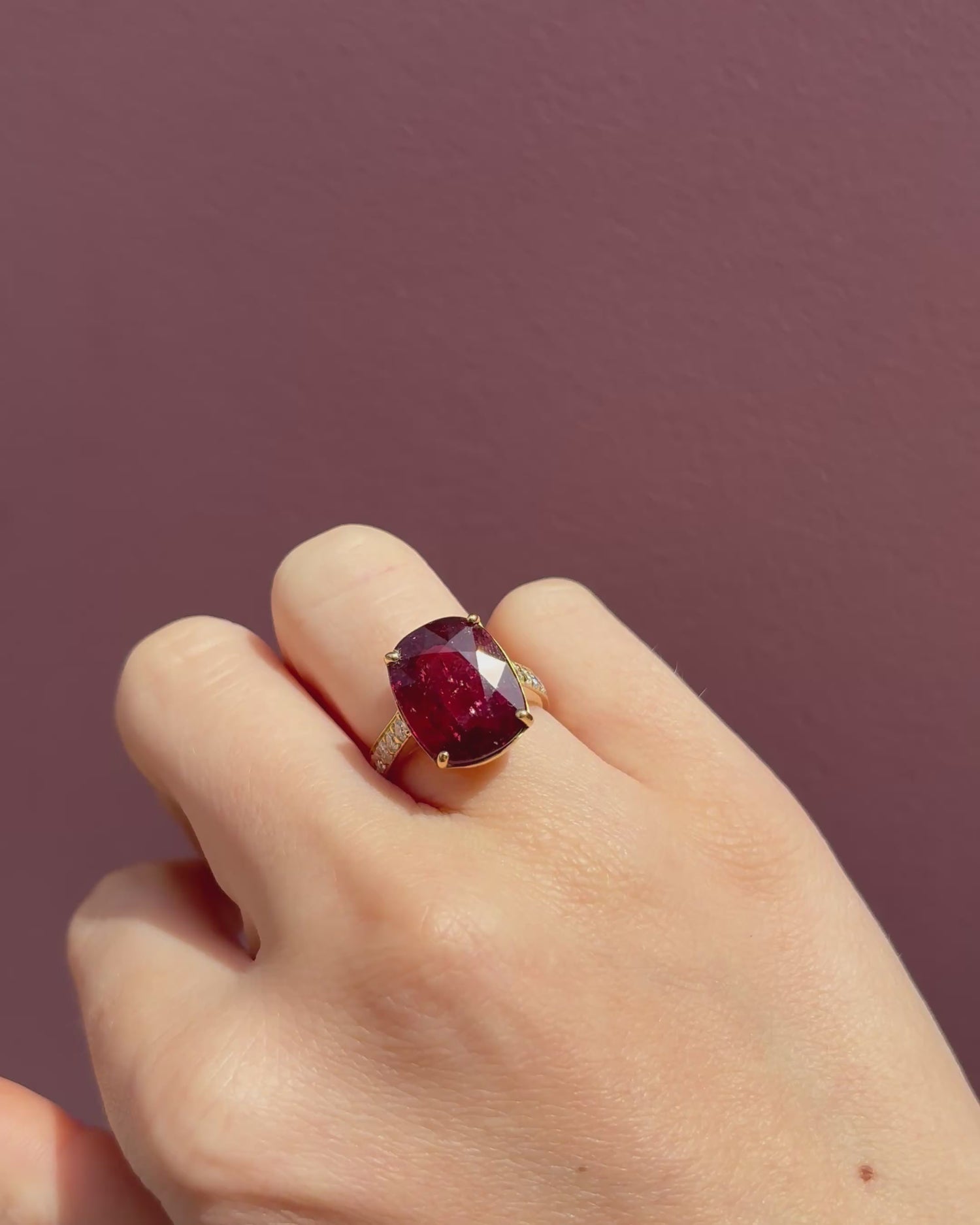Bague Cocktail Tourmaline Rubellite 10.87 Carats & Diamants "Violine"