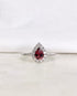 "Salma" est une bague marguerite poire vintage en or gris 18 carats, centrée d’une superbe tourmaline rose de 0.75 carat. Elle est sublimée par un éclatant halo de 13 diamants totalisant 0.26 carat, dans un design floral emblématique des bijoux anciens.
