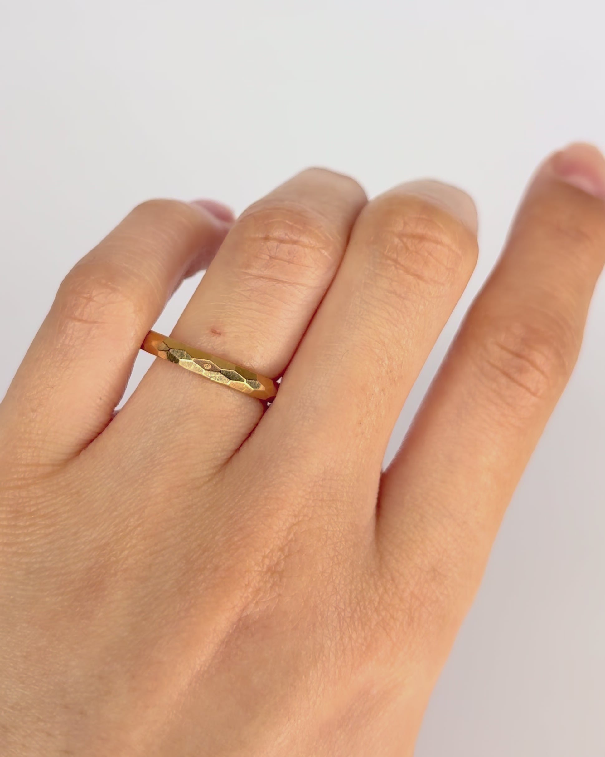 El anillo "Ninna" es una alianza vintage elegante en oro amarillo cobrizo de 18 quilates, reflejo de un saber hacer atemporal de un maestro joyero francés.