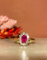 Anillo "Rosanne" con rubí de 0,60 quilates y margarita de diamante de 0,24 quilates