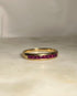 Son anneau finement travaillé est serti de neuf rubis calibrés.