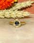 Sa monture en or jaune 18 carats est sertie d’un magnifique saphir bleu roi de 0.30 carat et est rehaussée de six diamants totalisant 0.12 carat.