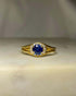 Son anneau or jaune 18 carats est serti d’un saphir bleu aux reflets éblouissants.