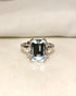"Déraé" est une bague cocktail lumineuse en or gris 18 carats, ornée d’une somptueuse aigue-marine de 3.80 carats accompagnée de 6 diamants totalisant 0.30 ct. Cette pièce des années 1970 séduit par l’intensité cristalline de sa pierre centrale et l’éclat subtil de ses diamants.