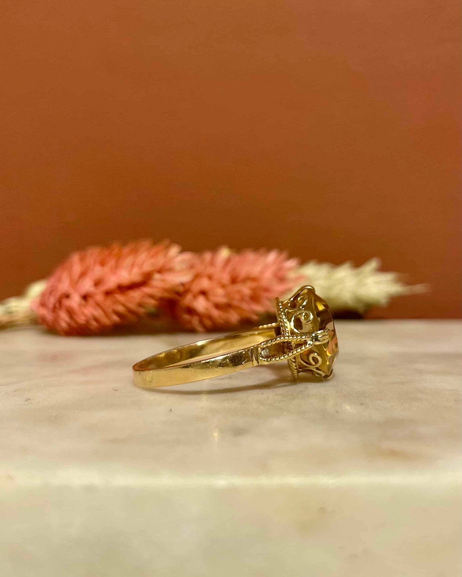 Elle est habillée d’une Citrine éblouissante de 4.40 carats.