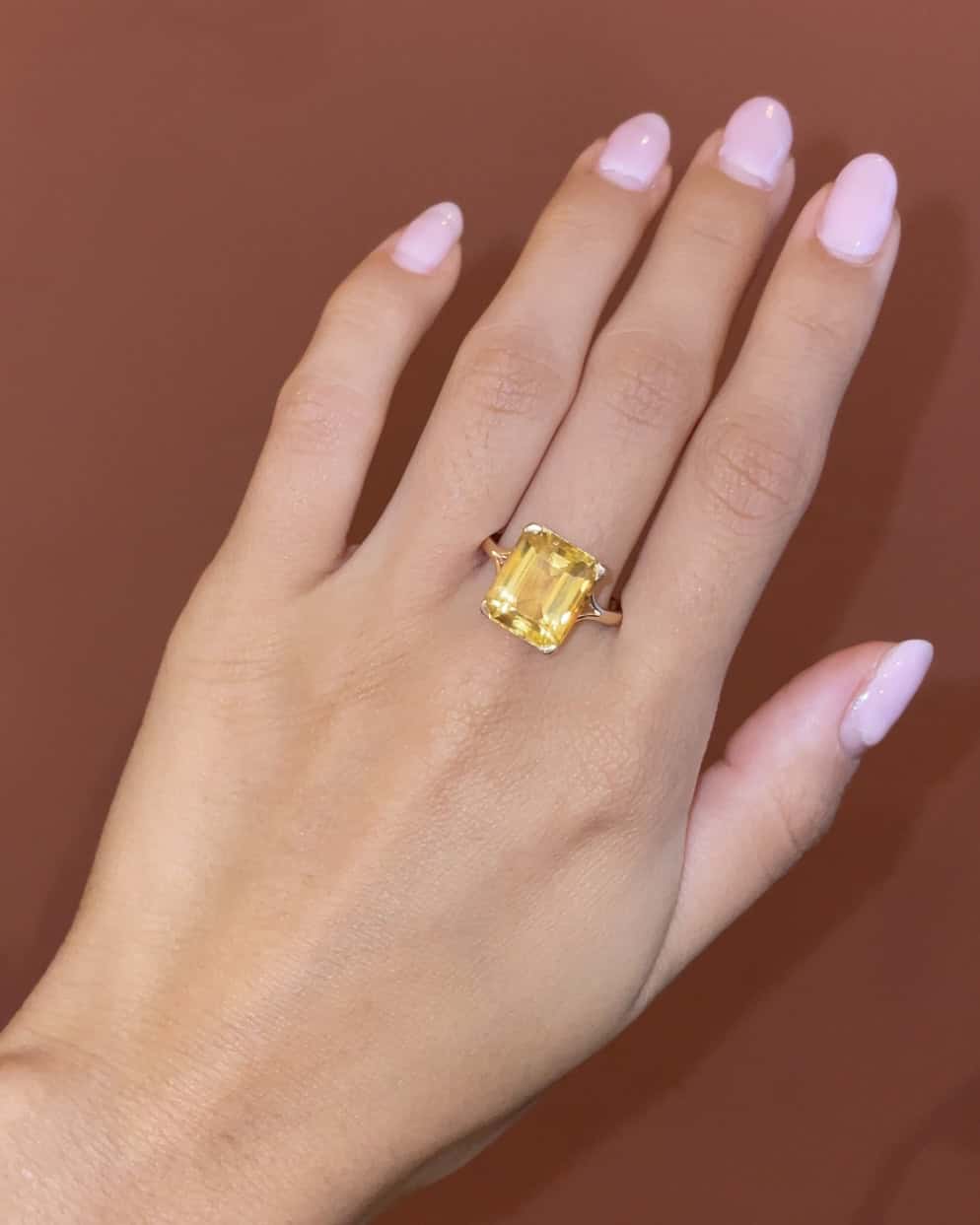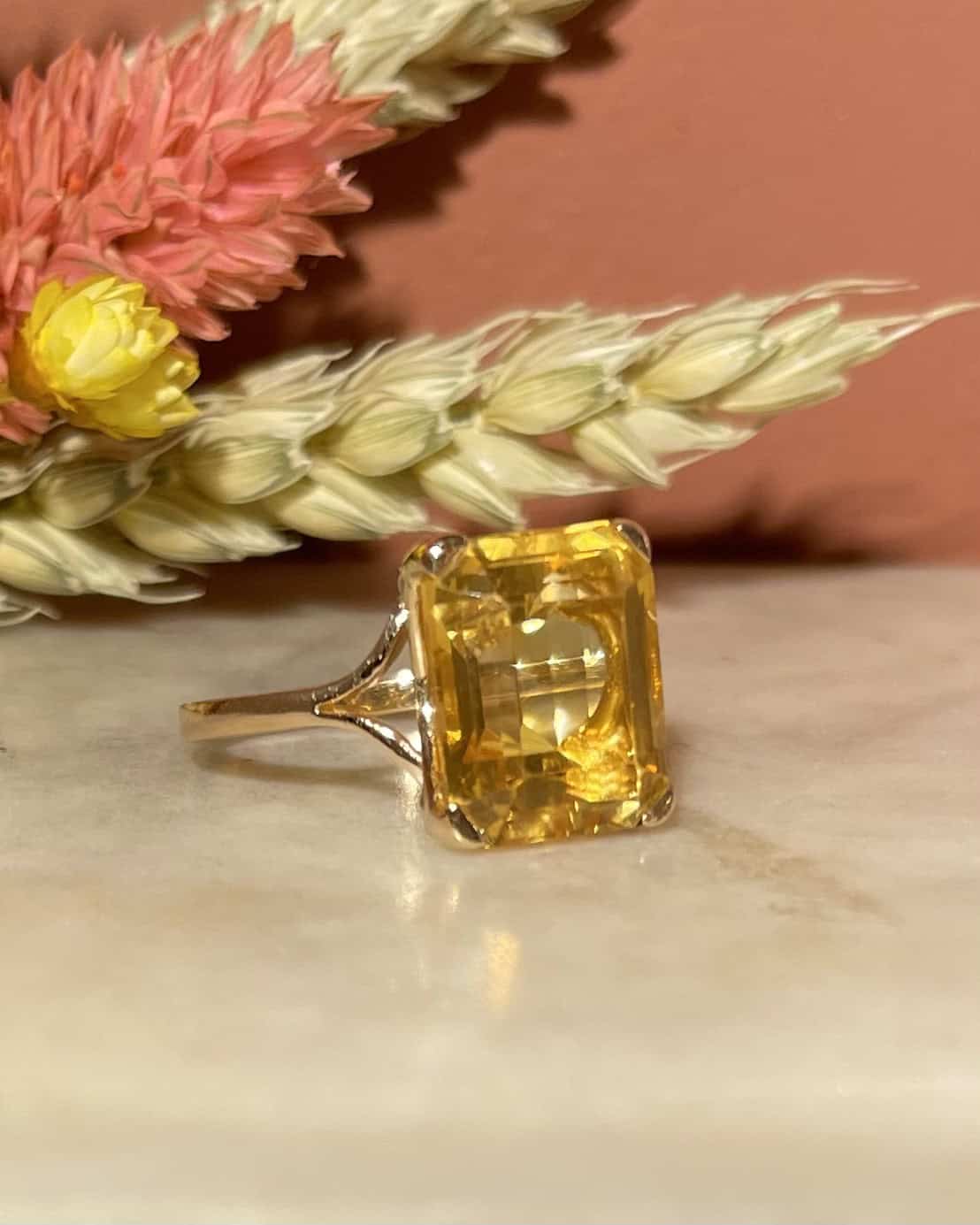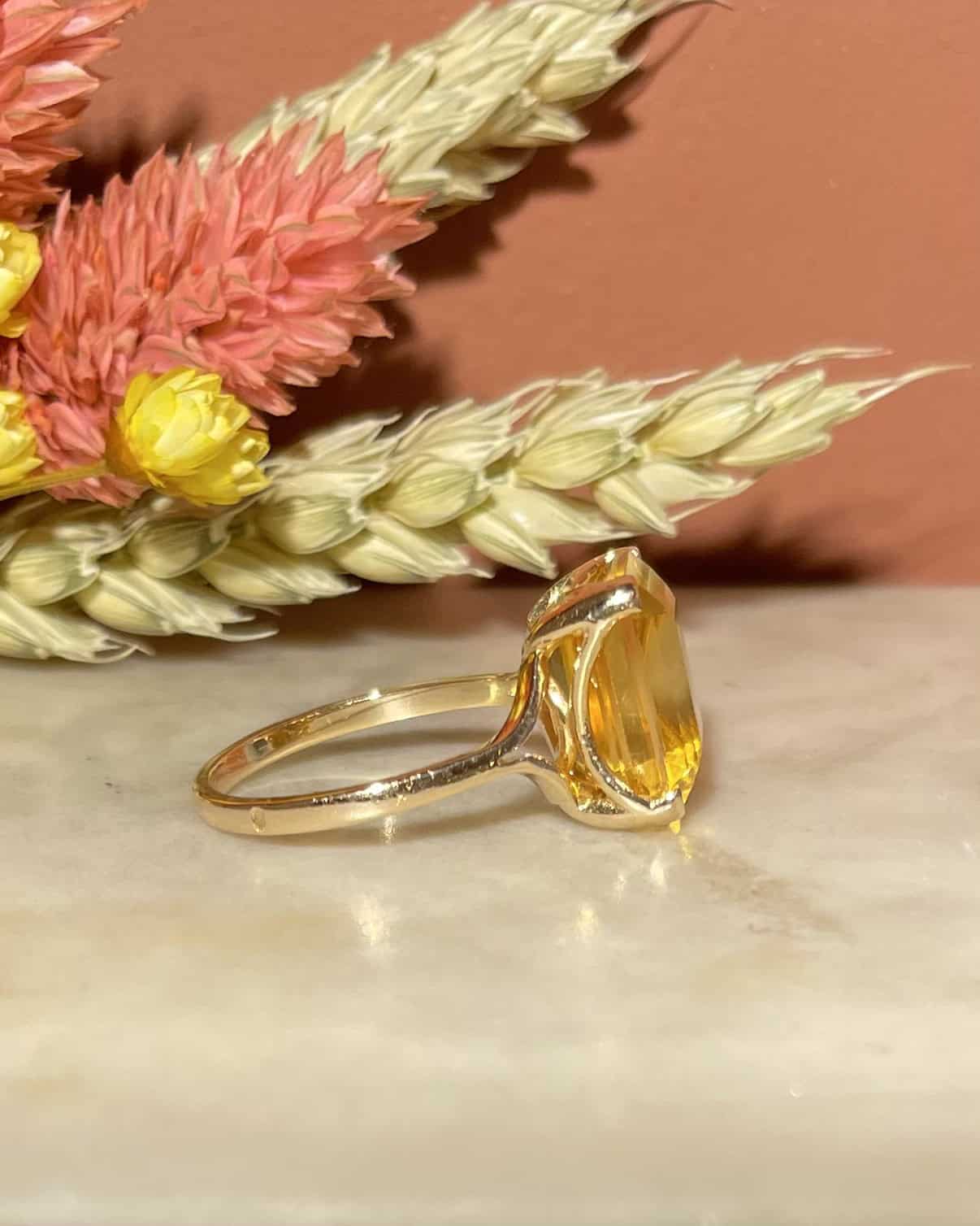 Elle est habillée d’une Citrine rectangulaire éblouissante de 6 carats .